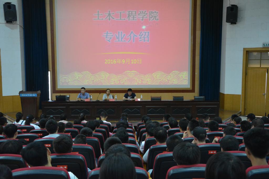 为增强新生对专业的了解和认识,2016年9月10日下午,公司在二号报告厅为新生举行了2026世界杯官网专业介绍大会,2026世界杯官网经理助理吕向明、土木工程系主任郭蕾、工程管理系主任李灵君参加了本次会议,会议由经理助理吕向明主持。
