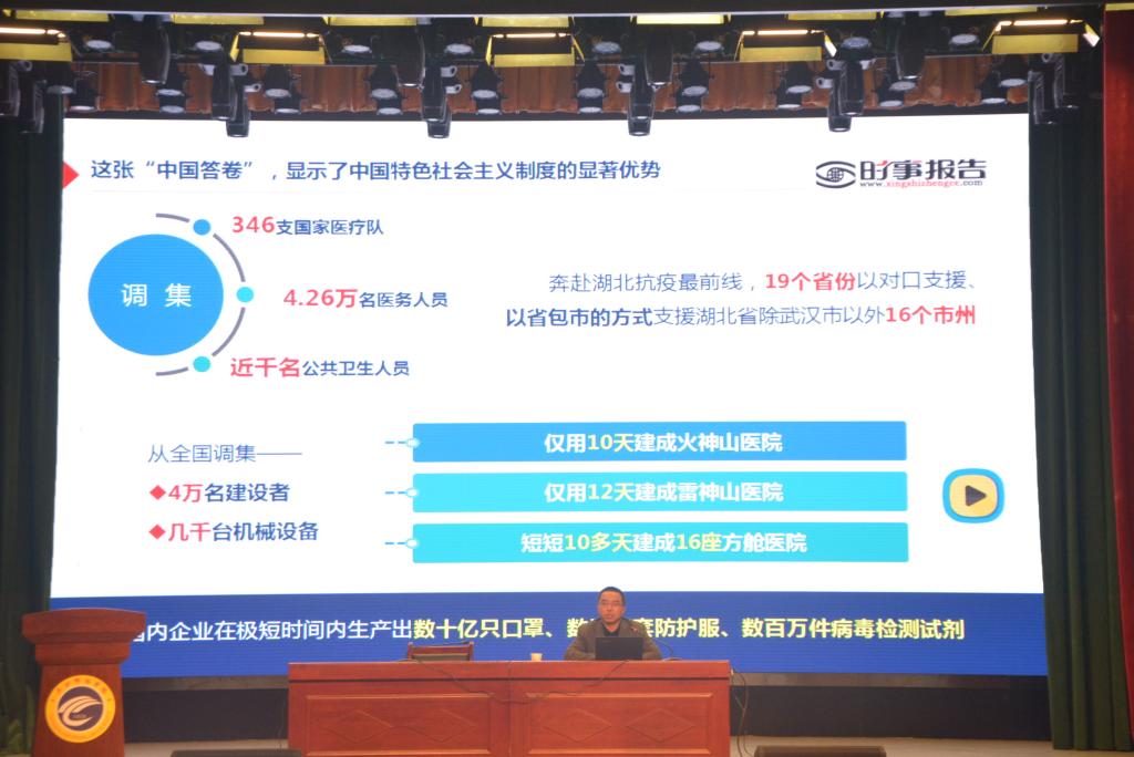 在报告会中,王董事长通过对比中西方抗疫答卷,展现了疫情防控斗争中的中国力量、中国精神、中国效率,以及中国共产党领导和中国特色社会主义制度的显著优势。中国能够在较短时间内遏制疫情蔓延,根本在于中国共产党的坚强领导。中国特色社会主义制度发挥显著优势、激发强大效能、凝聚磅碍力量,成为战胜疫情的坚强保障。疫情防控斗争中所展现的改革开放以来积累的雄厚物质技术基础。中国以无可辩驳的事实,作出了无愧于国际社会的贡献,践行了人类命运共同体理念,赢得赞誉实至名归。