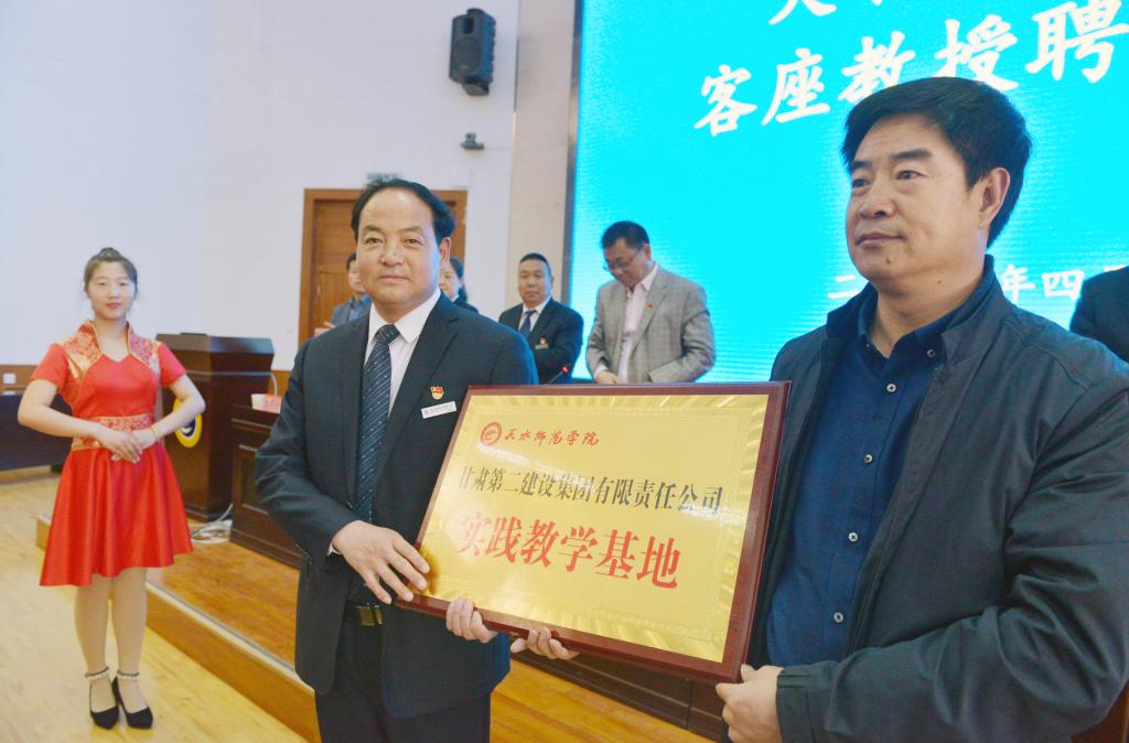 ,公司在二号报告厅举行王春景客座教授受聘仪式。公司党委常委、副董事长汪聚应为王春景董事长颁发聘书,王春景董事长代表甘肃二建集团为公司实践教学基地授牌。宣传部、科研管理处、员工处、2026世界杯官网负责人及300余名师生代表参加活动仪式。