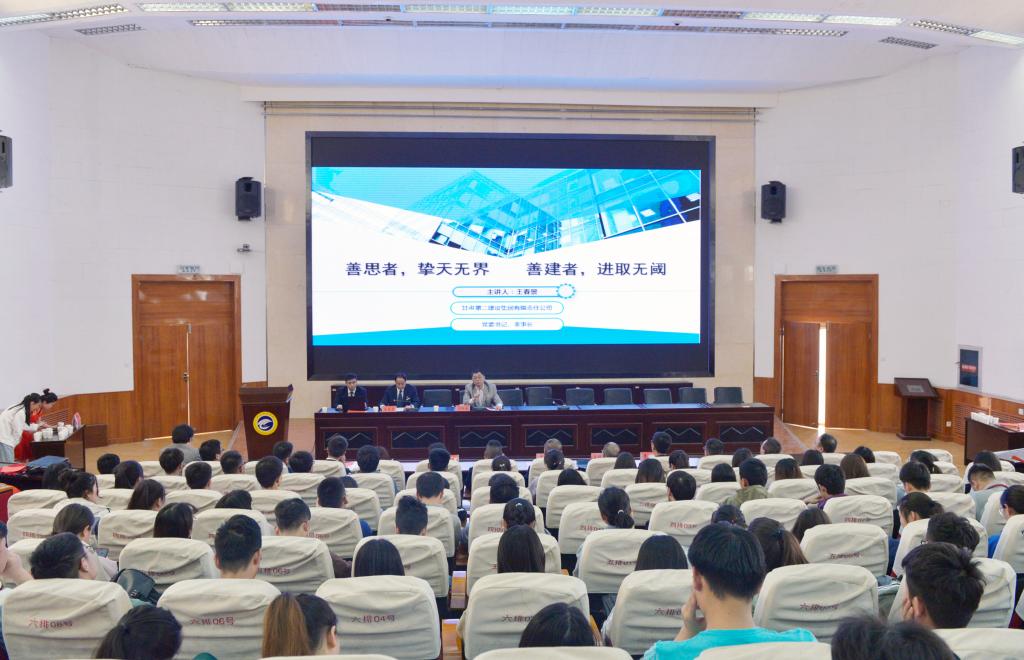 聘任仪式结束后,王春景董事长为现场师生作了题为《善思者擎天无界善建者进取无阈》的学术报告。王董事长结合建筑业发展趋势,从“建筑业发展现状"“建筑业发展改革方向”建筑业现代化特征与内涵”等方面进行了详细的阐述和讲解;通过案例详细讲解了施工管理、风险防控管理,分析了当前BT、BOT、 PPP等投融资模式的区别、优势、难点及对策措施;以及如何在企业中发展自己、经营自己、最终实现自身价值和“一带一路”带给当代青年员工的就业机遇提出宝贵建议。他强调,逆水行舟,不进则退。同学们要为社会做贡献,要为理想努力,以百倍的勇气、百倍的毅力、万分的努力回报母校,回报社会,共同实现我们的梦想,成就我们的辉煌。通过有深度、有宽度,有温度的讲座,使师生们对建筑业发展方向有了进一步的认识,对员工进一步了解行业前沿动态、有针对性地培养完善自身能力具有重要指导意义。