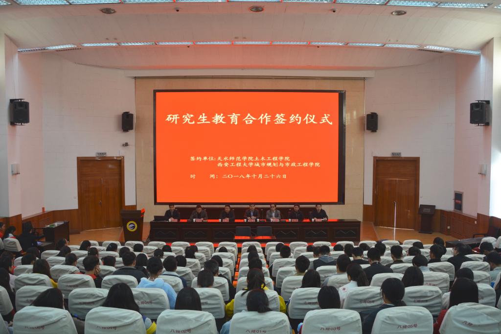 为了探索研究生教育工作,公司与高水平院校积极开展研究生教育合作。2018年10月26日,公司和西安工程大学城市规划与市政工程公司在二号报告厅举行了研究生教育合作签约仪式,出席此次签约仪式的有西安工程大学城市规划与市政工程公司党委书记杨友谊,副经理强天伟、研究生秘书李伟博士、教学秘书张红卫博士及公司直属党支部书记张建宏、经理杨帆、副经理吕向明,签约仪式由吕向明主持。