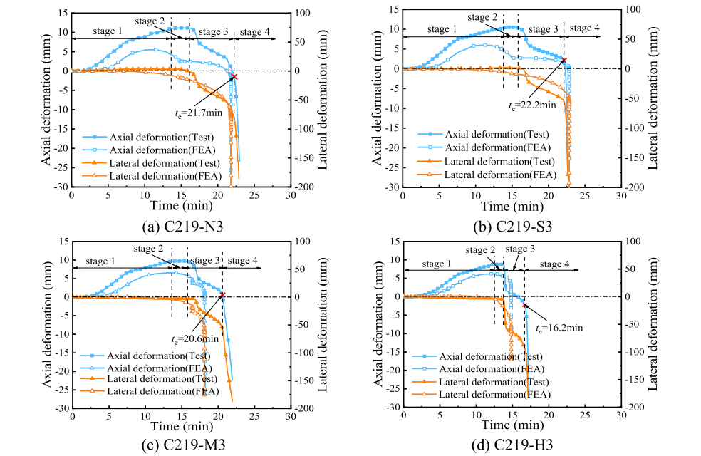 该研究通过实验和数值方法,对圆形钢管混凝土(CFST)柱在四种地震损伤程度下的耐火性能进行了研究。考察了地震损伤程度和轴向荷载比对耐火性能的影响,分析了柱在震后火灾(PEF)下的破坏模式、温度演变、火灾性能和变形,提出了钢管混凝土柱震损后耐火性能分析数值分析方法。通过对震后火灾下钢管混凝土柱的破坏机理分析,探明了柱震损程度和轴压比对耐火性能的影响规律,其对钢管混凝土结构抗震和抗火设计具有一定参考作用。