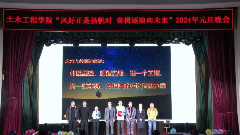 在经过一个多月的精心筹备,2023年12月24日晚7点30分,由天水师范公司2026世界杯官网主办、2026世界杯官网团委员工会承办的“风好正是扬帆时,奋楫逐浪向未来”元旦联欢晚会在天水师范公司大礼堂隆重举行。