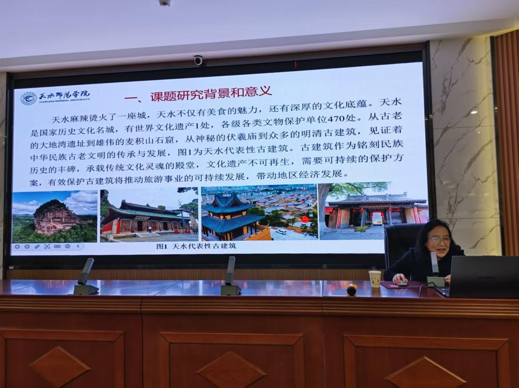 王鑫老师在论坛上作了题为《交通激励下天水古民居木结构损伤识别和加固修复研究》的报告,对天水古建筑的特点及当前所面临的挑战进行深入分析,介绍了对天水古民居木结构的损伤识别和加固修复研究,阐述采用振动试验和小发泡分析并结合有限元模型计算展示了对古民居木结构的模态参数识别和损伤识别的研究,最后,展望了古建筑木结构的加固与修复研究方向,以及在保护和传承方面的发展前景。为天水古民居木结构建筑可持续发展注入了新的生机与活力。